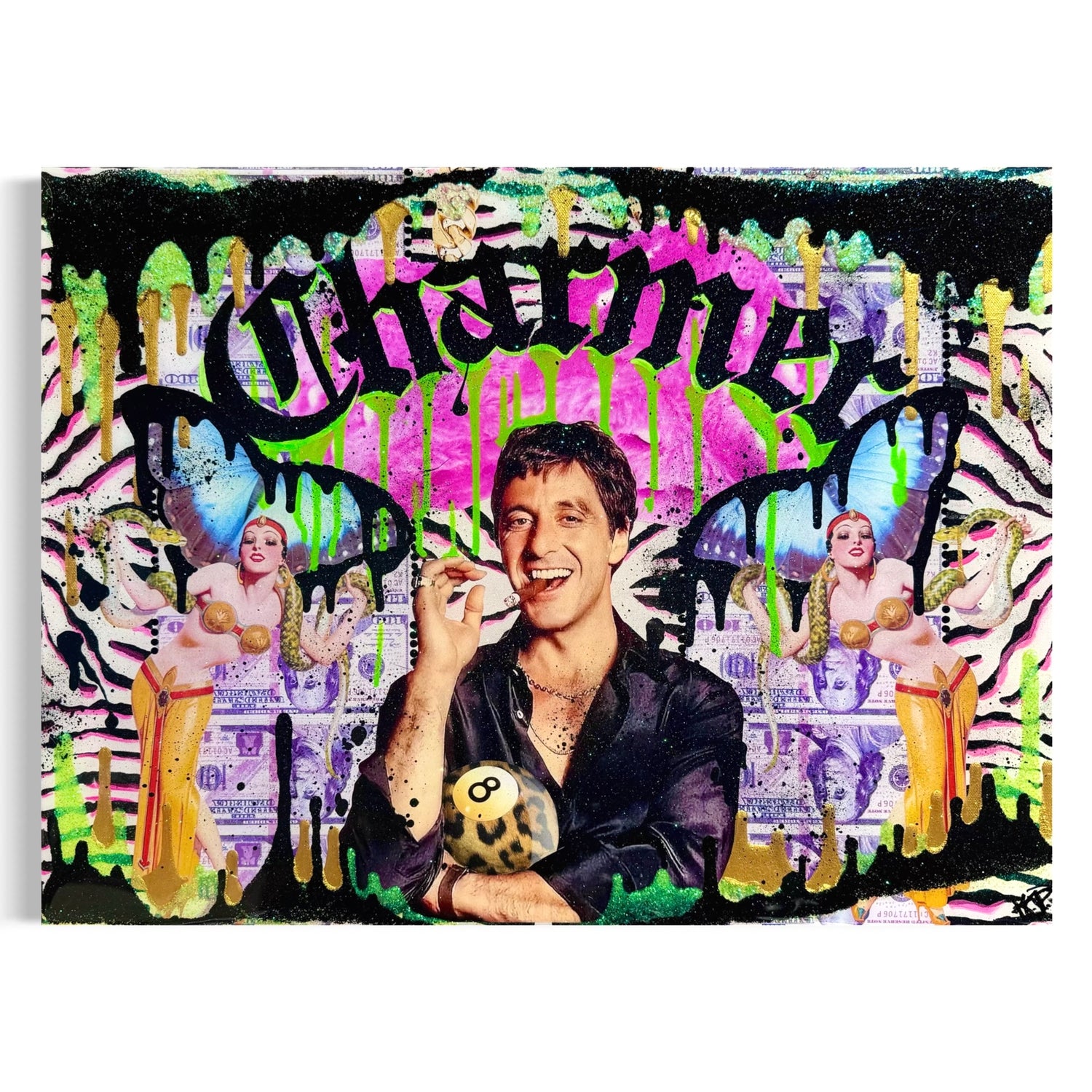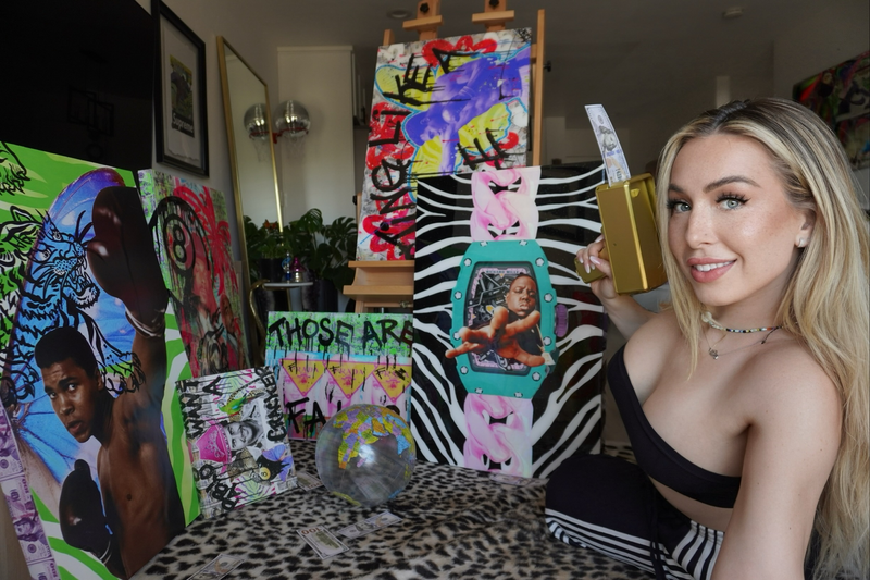 Kelsey J. Powers is a Southern California–based mixed-media artist creating vibrant, layered works influenced by street culture, travel, and spiritual symbolism. Her compositions blend bold color, cultural iconography, and themes of abundance, capturing the energy of modern luxury and the belief that opportunity exists everywhere.